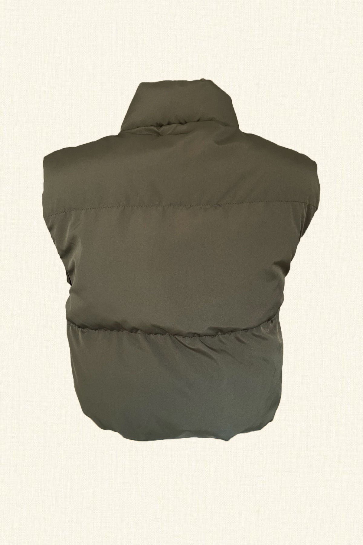3 Renkli Kristal Taş İşlemeli Asker Yeşili Şişme Yelek