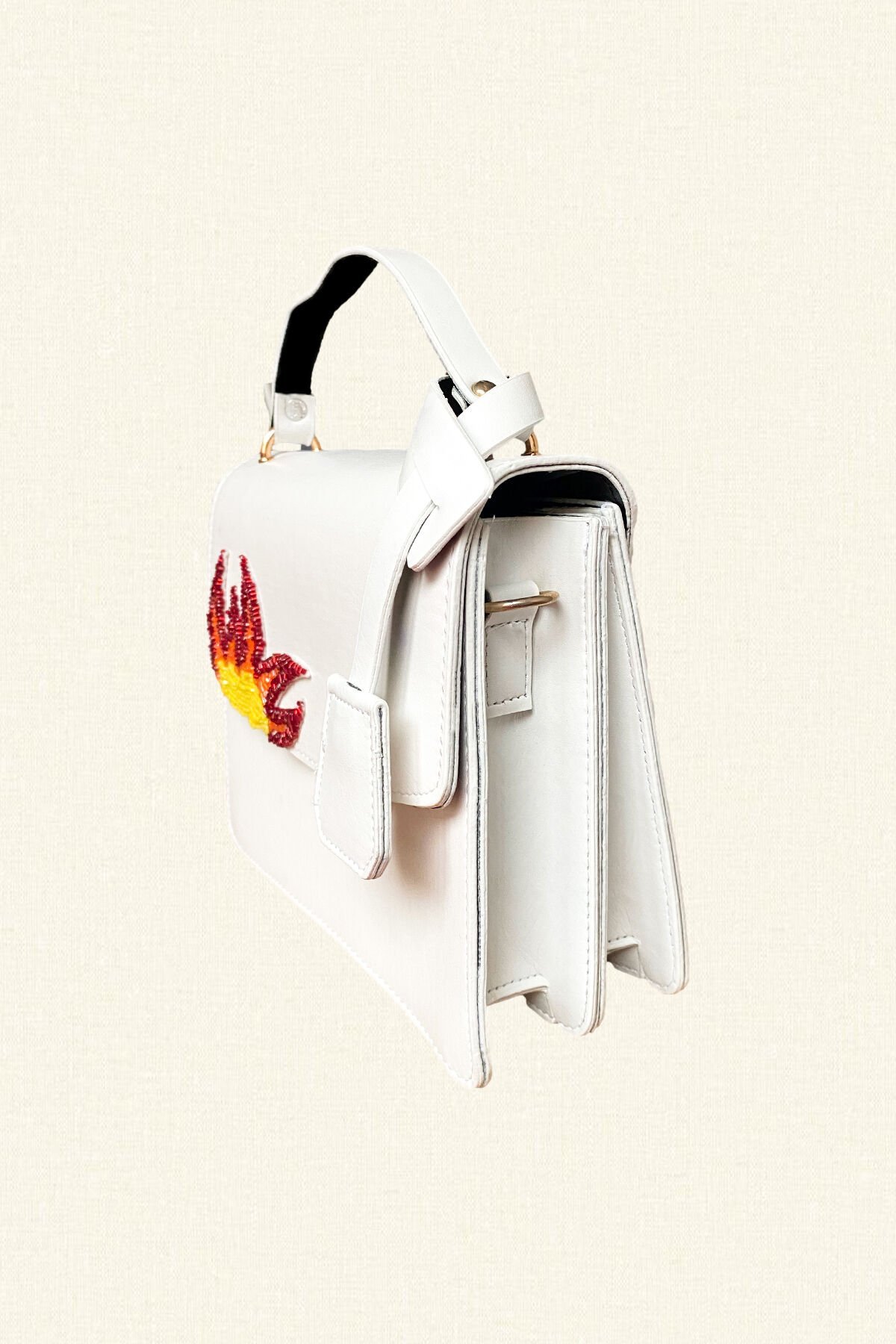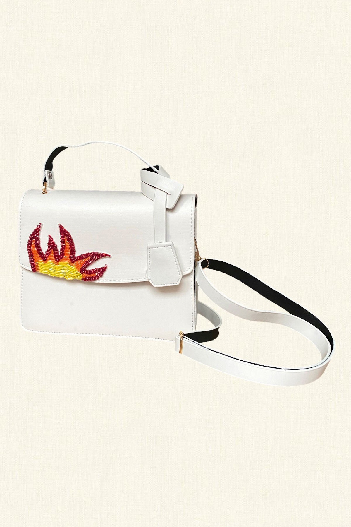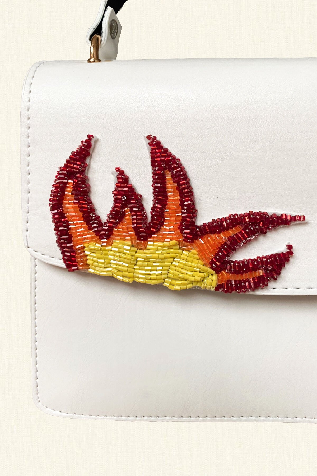 Alev İşlemeli Beyaz Renk Çanta