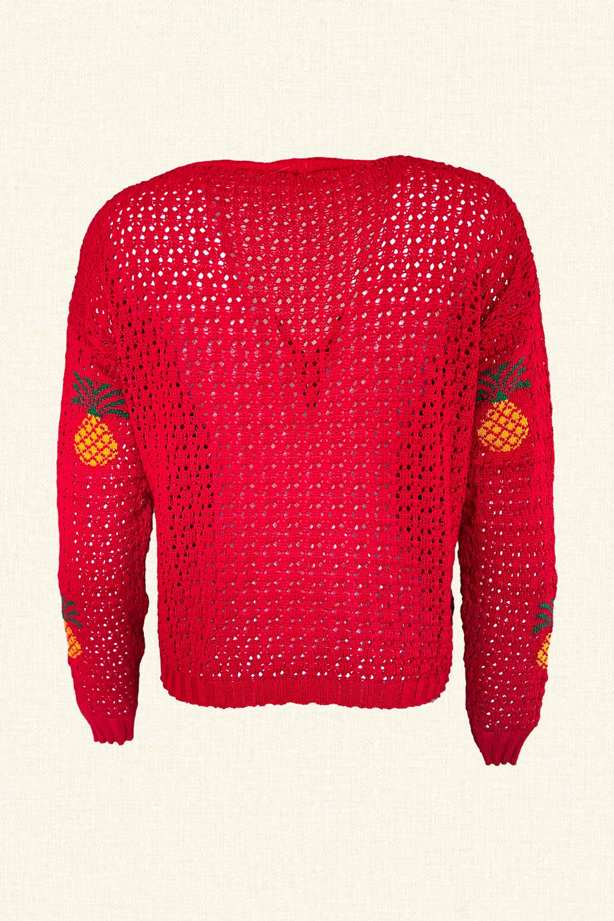 Ananas İşlemeli Kırmızı Renk Triko Hırka