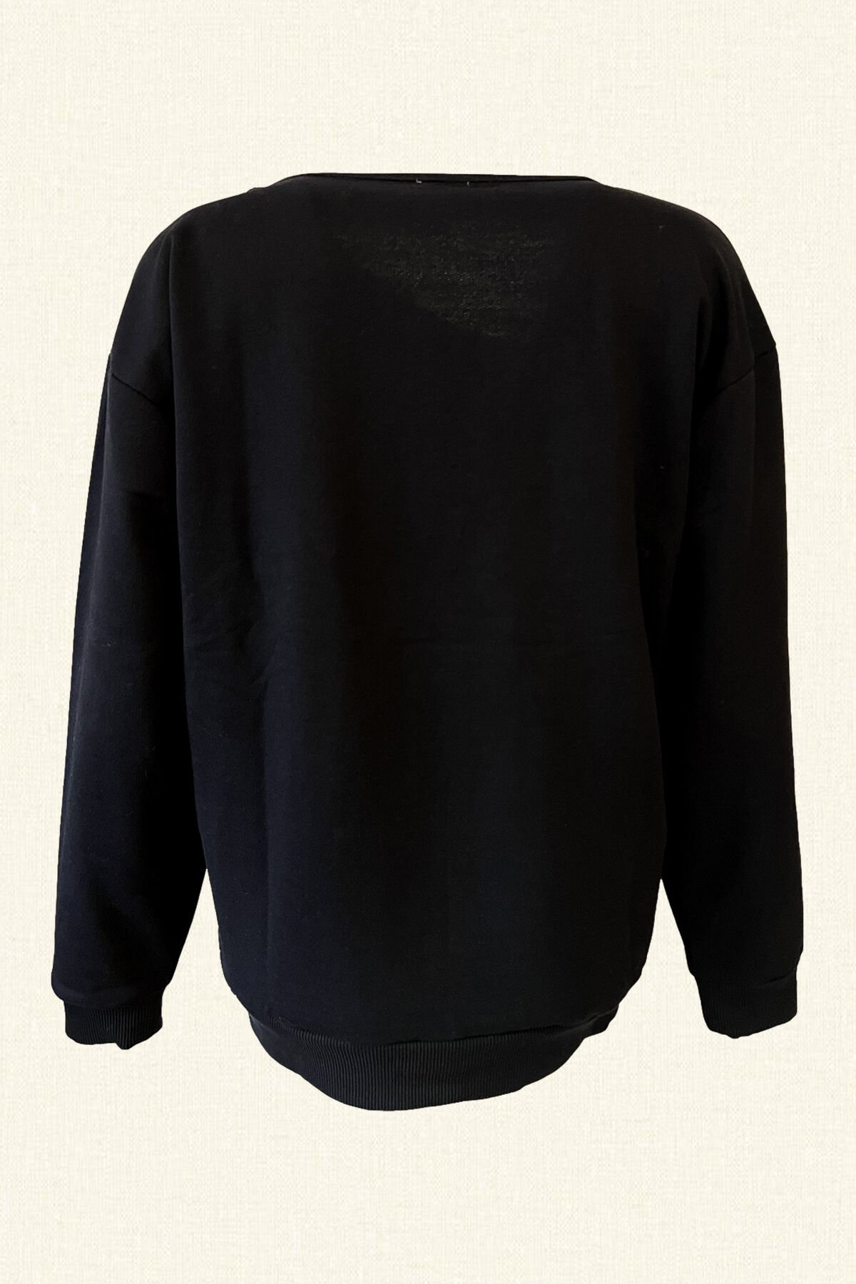 Asimetrik Yakalı Siyah Örme Sweatshirt