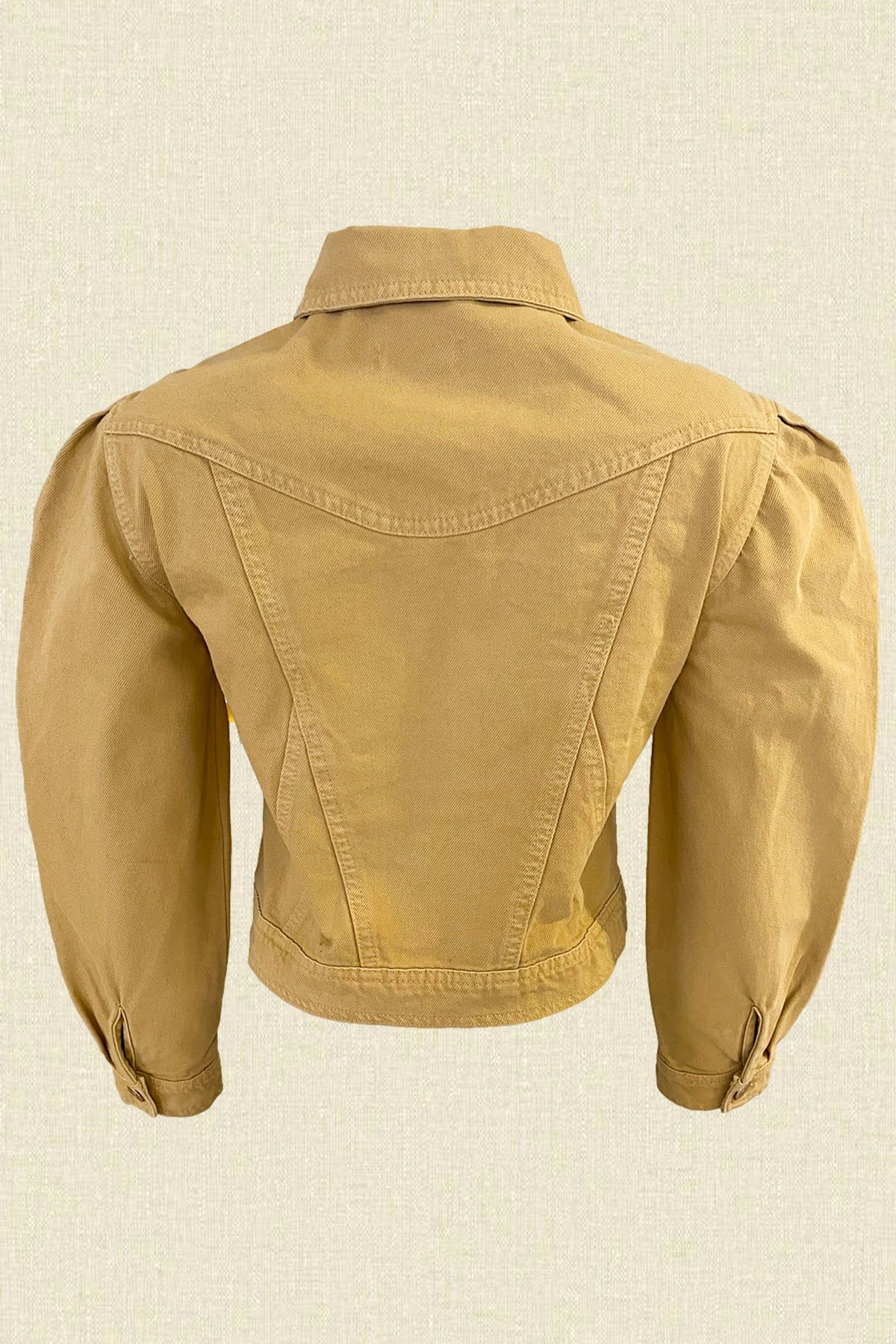 Biber İşlemeli Hardal Renkli Balon Kol Jean Ceket