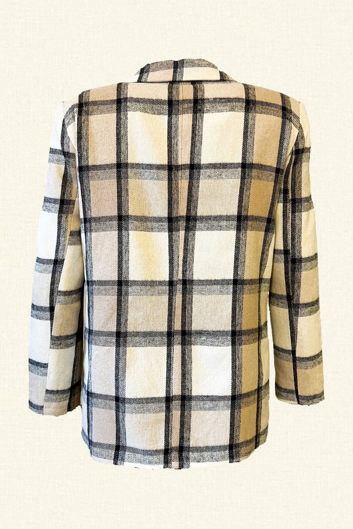 Boncuk İşlemeli Camel Ekose Blazer Ceket
