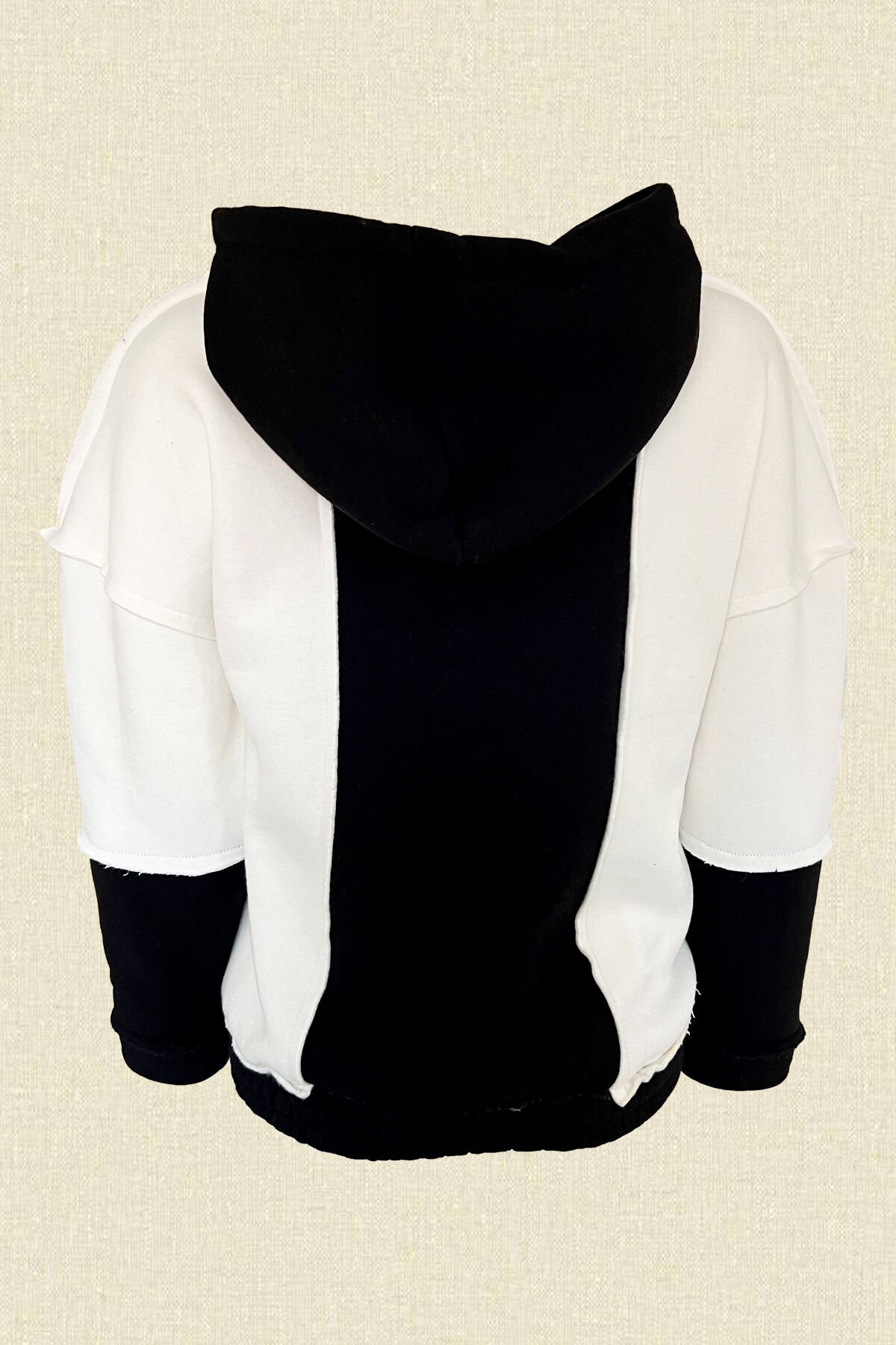 Boncuk İşlemeli Siyah-Beyaz Kapüşonlu Sweatshirt