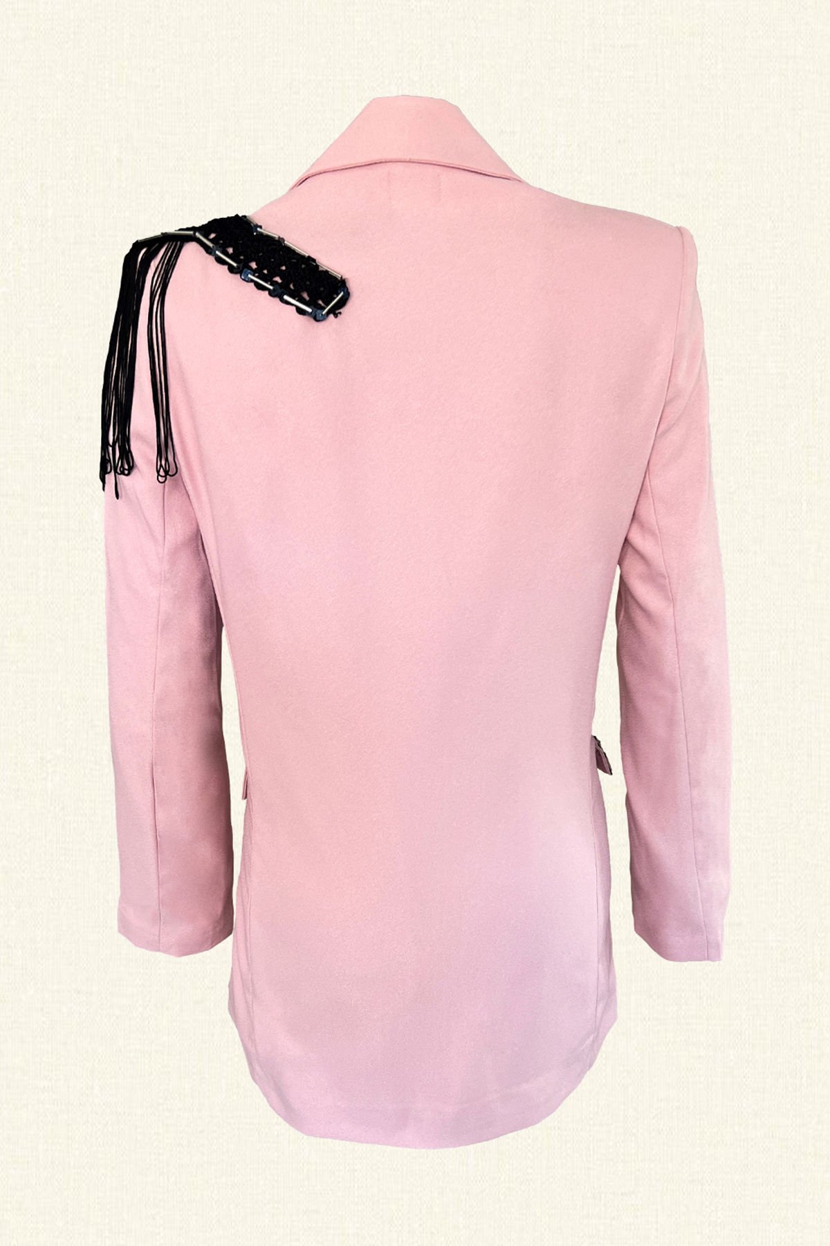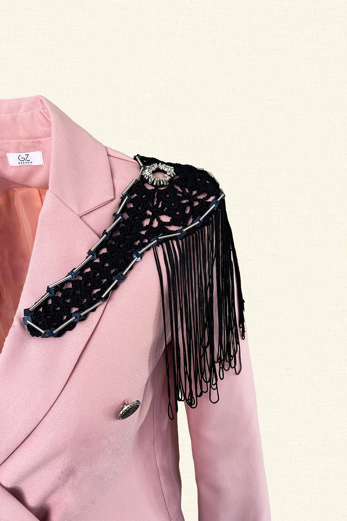 Boncuk İşlemeli Siyah Püskül Detaylı Açık Pembe Blazer Ceket