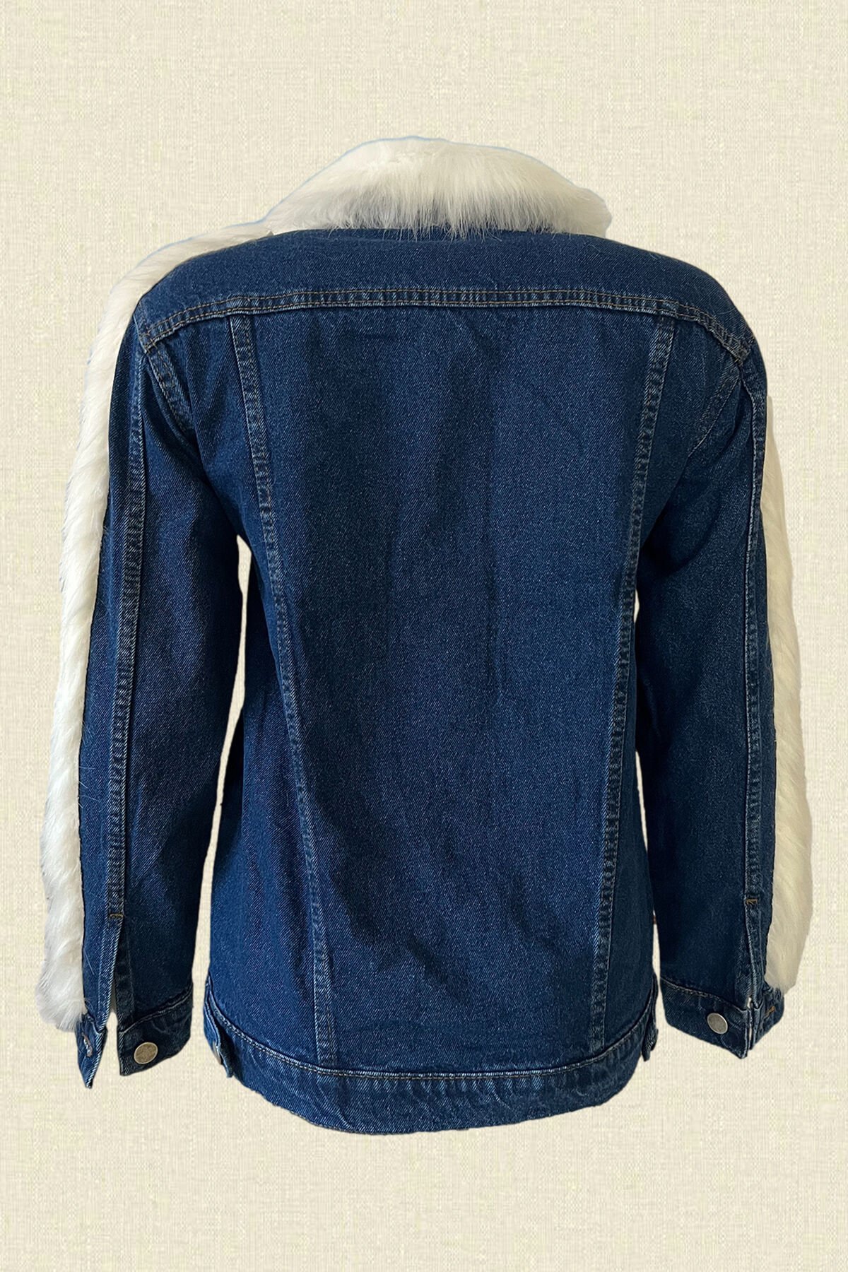 Eldiven Motifli Beyaz Kürklü Jean Ceket