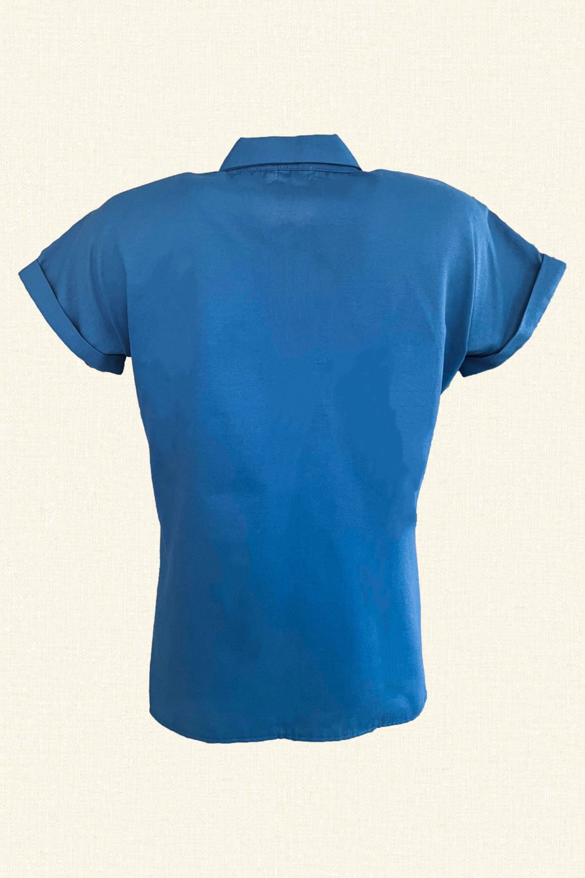 Gold Dal İşlemeli Kısa Kollu Mavi Gömlek