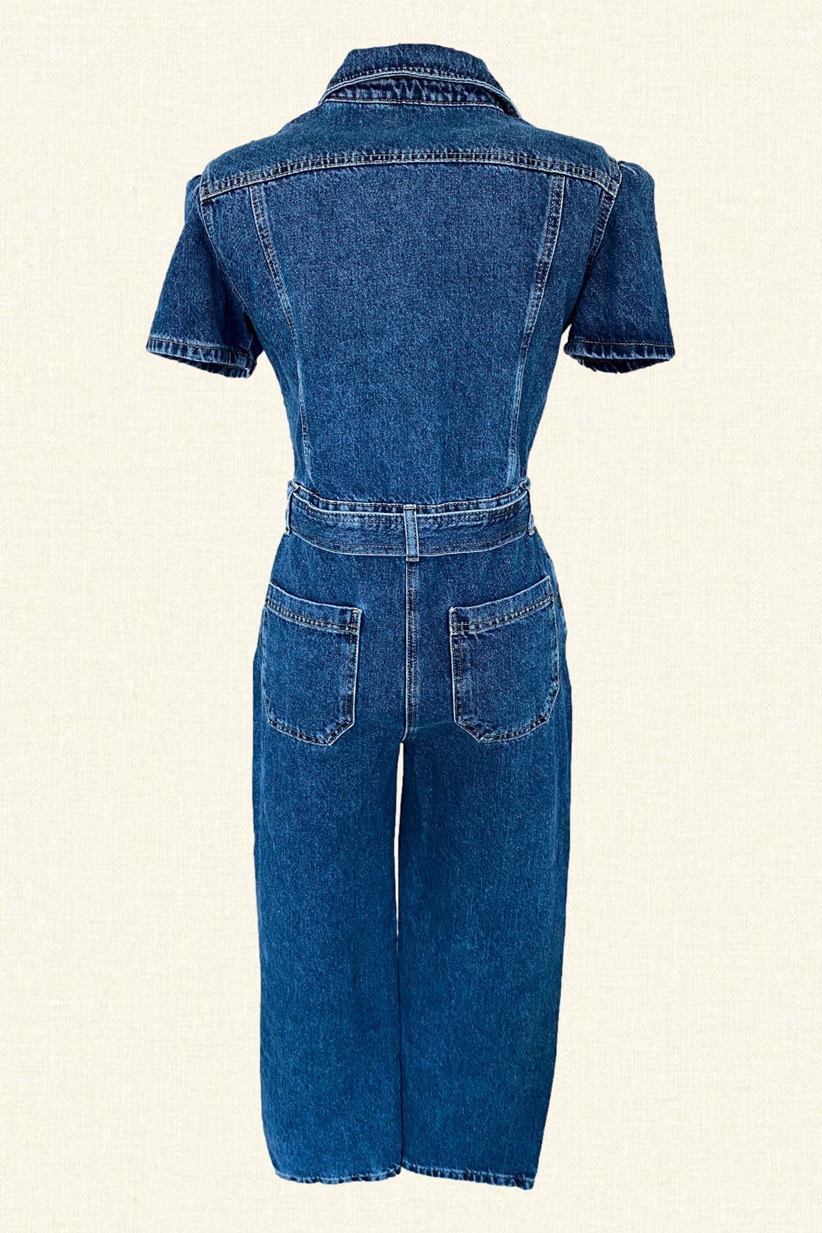Gümüş boncuk ve pullardan dal işlemeli, düğme, fermuar detaylı, kemerli, balon kol tulum.