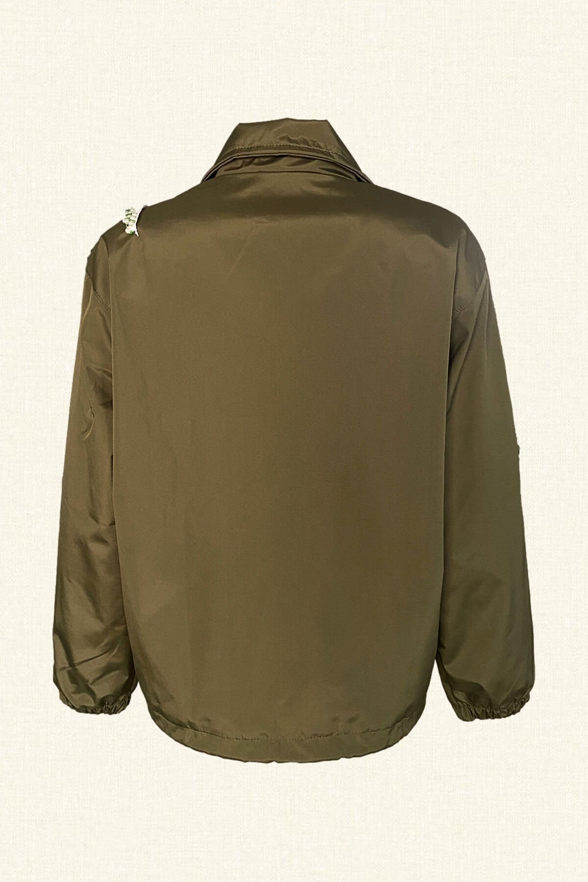 İnci İşlemeli Haki Yeşili Yağmurluk