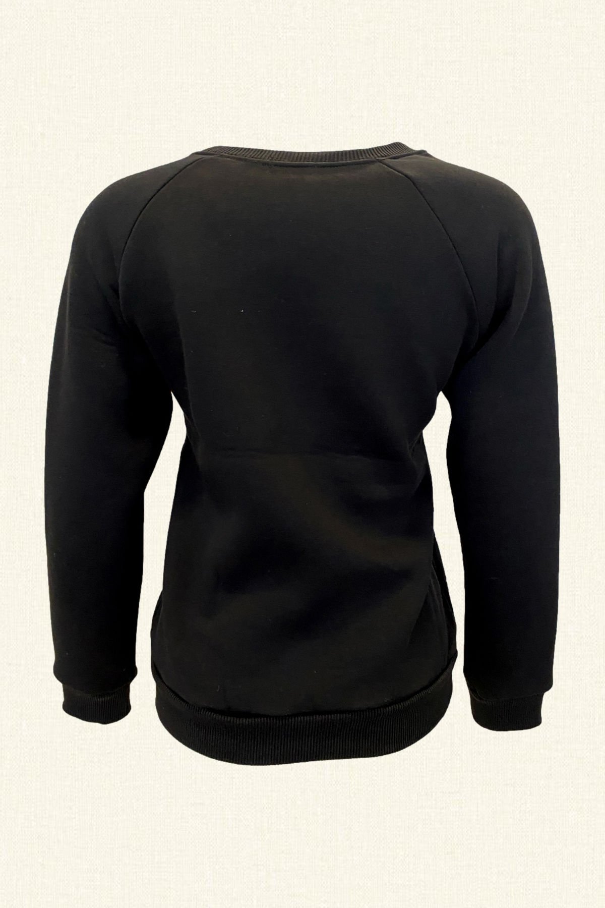 Kaplan motifi üzeri boncuk işlemeli içi polar siyah sweatshirt.