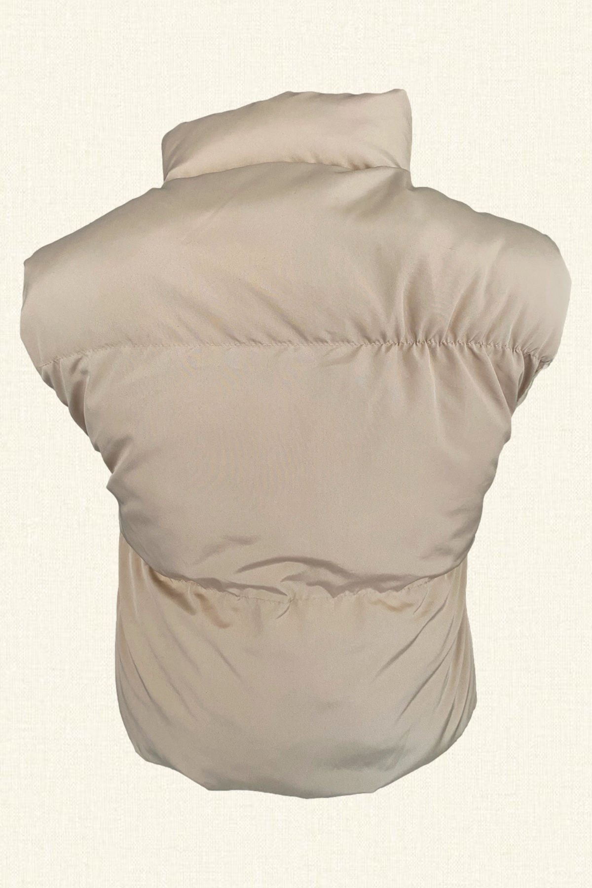 Kristal Taş İşlemeli Krem Rengi Şişme Yelek