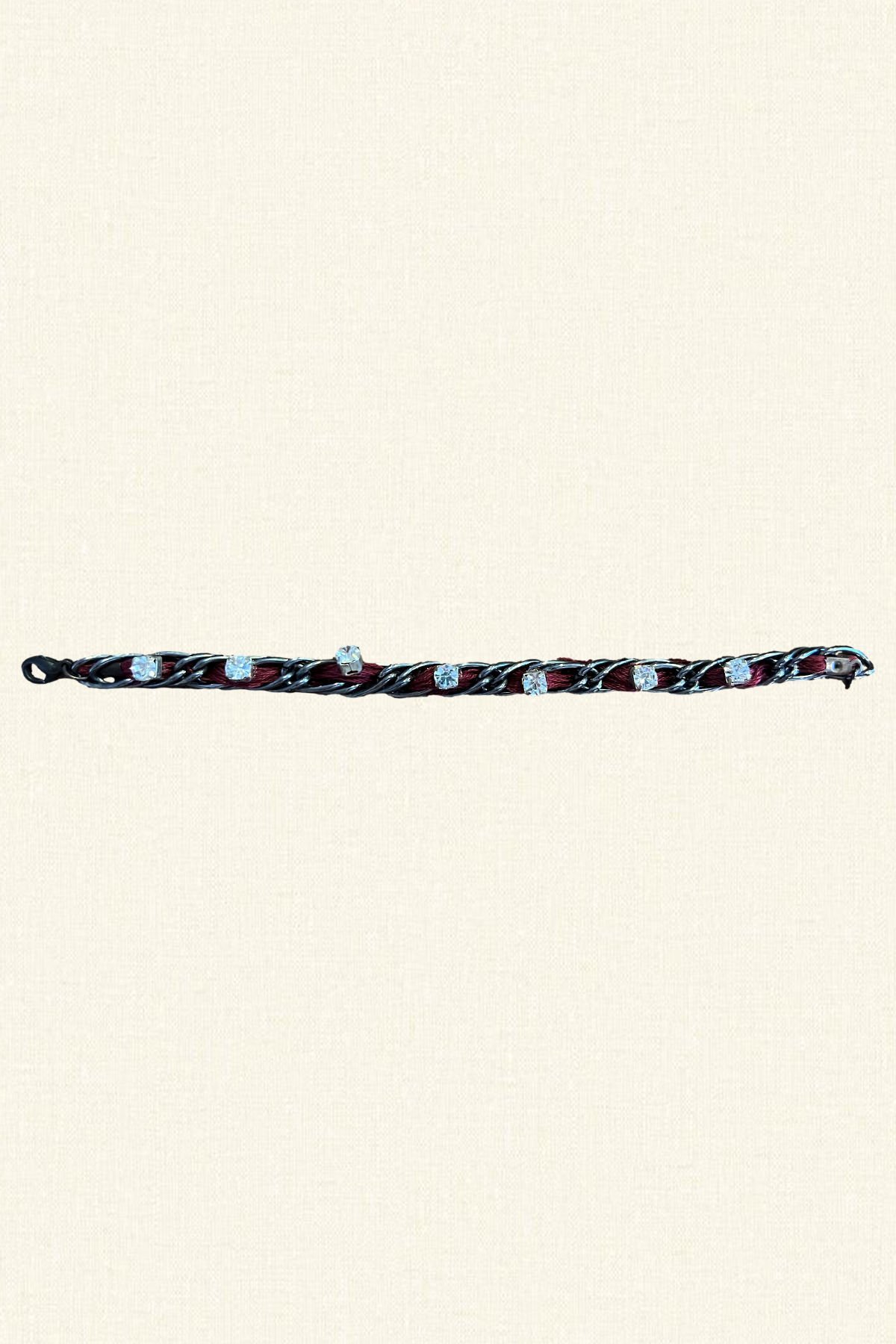Antrasit zincir ve kristal detayları olan bordo bileklik.