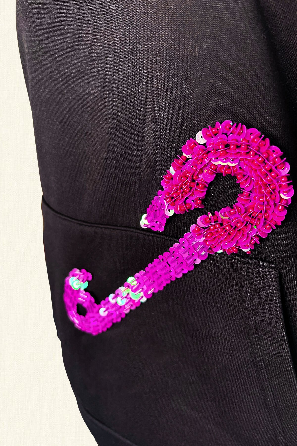 Pembe Çengelli İğne İşlemeli Siyah Renk Kapüşonlu Sweatshirt