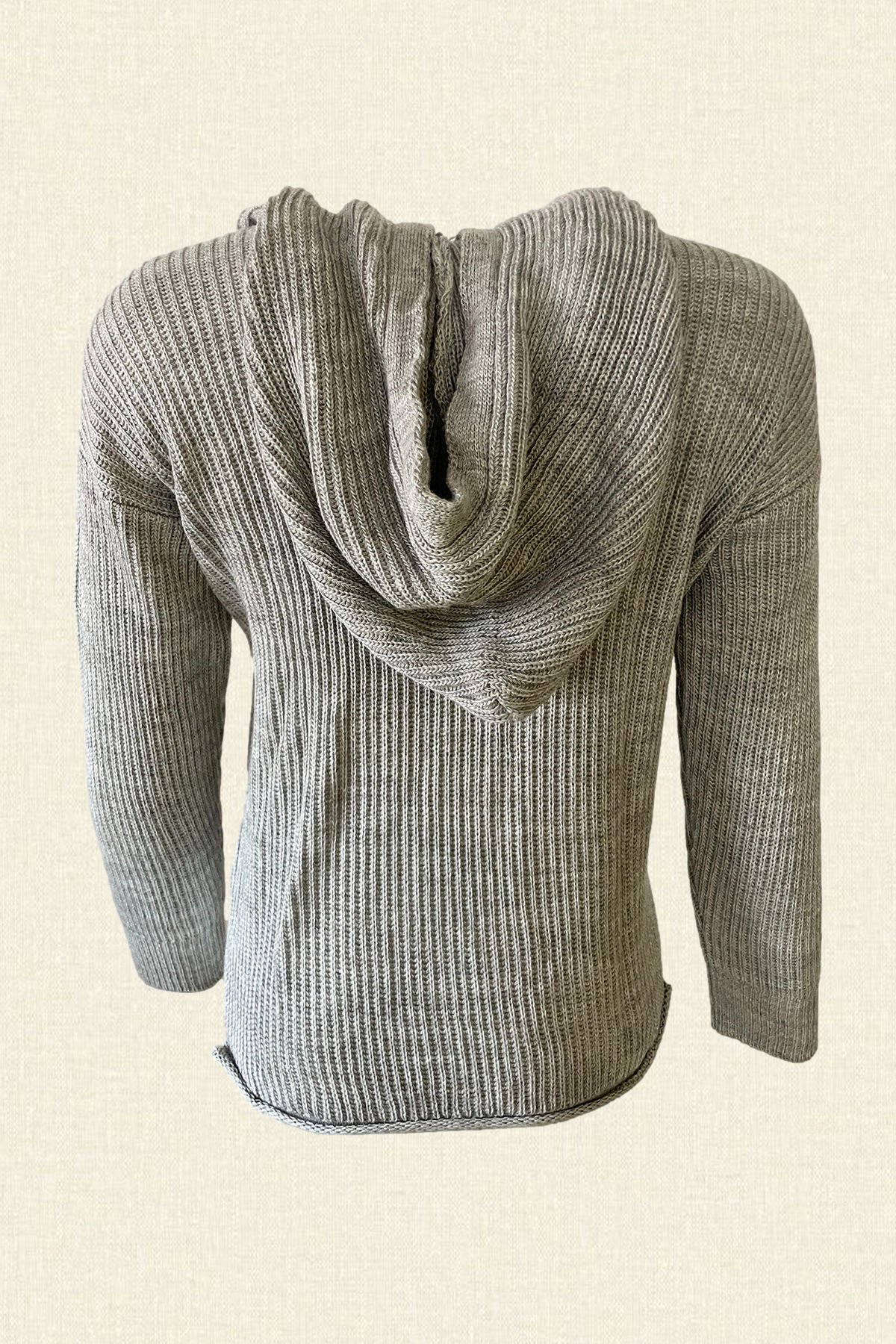 Sarı İşleme Detaylı Gri Kapüşonlu Kazak