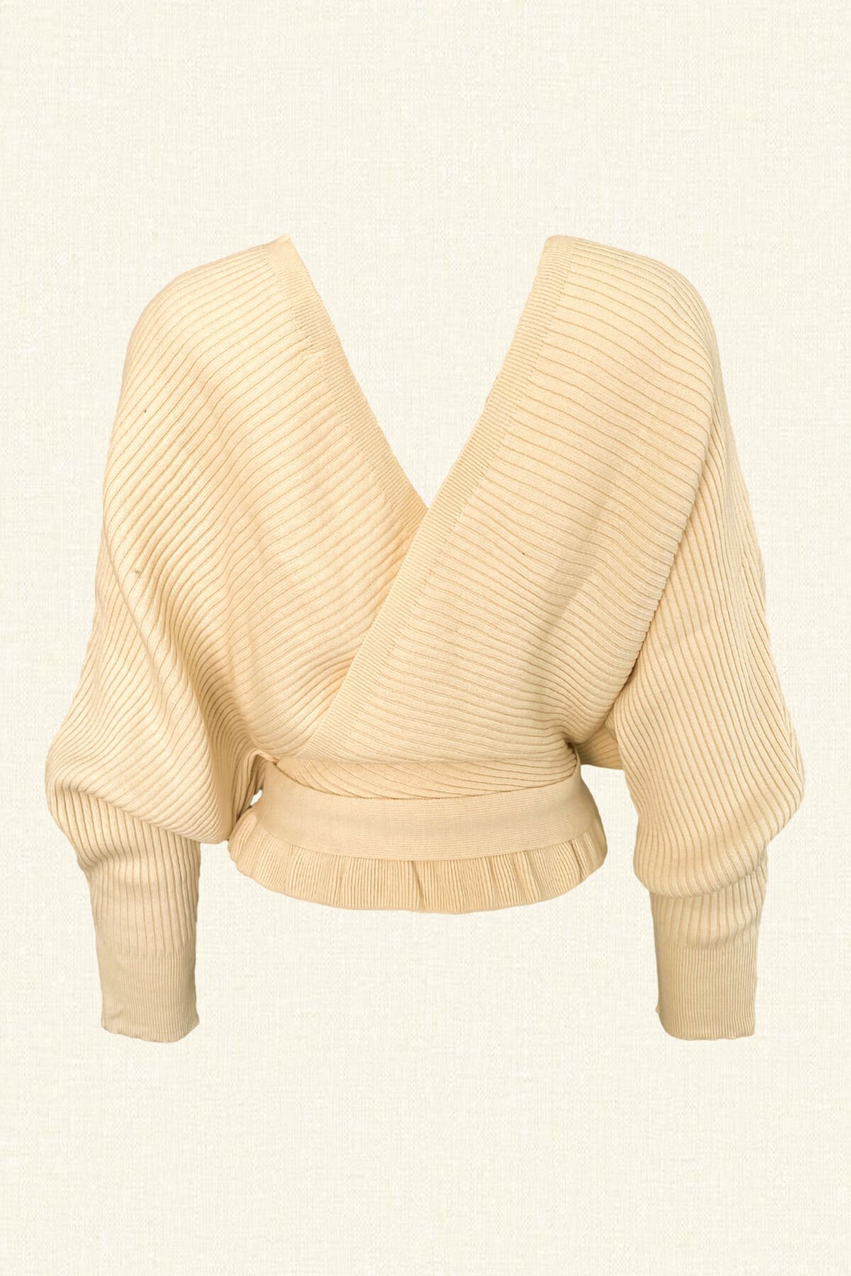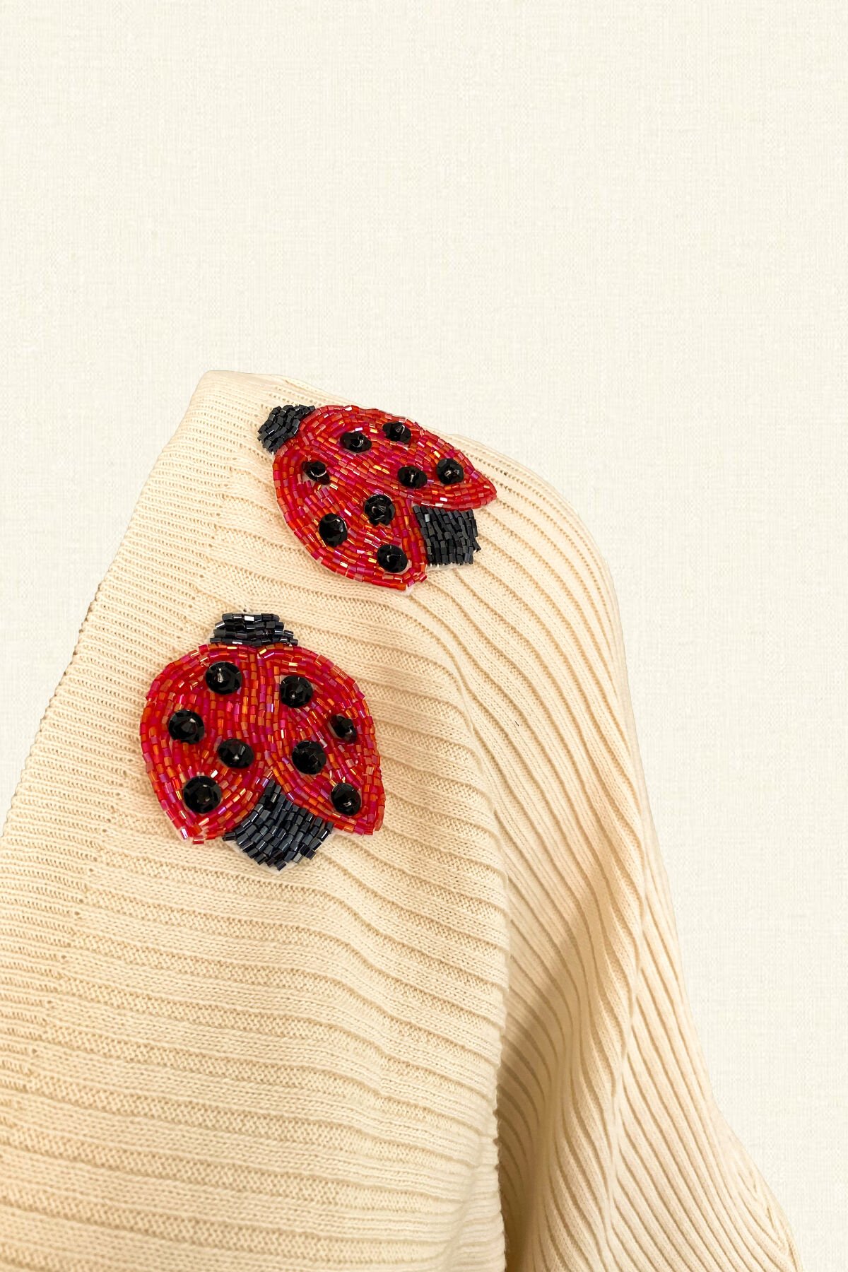 Uğurböceği İşlemeli Krem Renk Örme Bluz