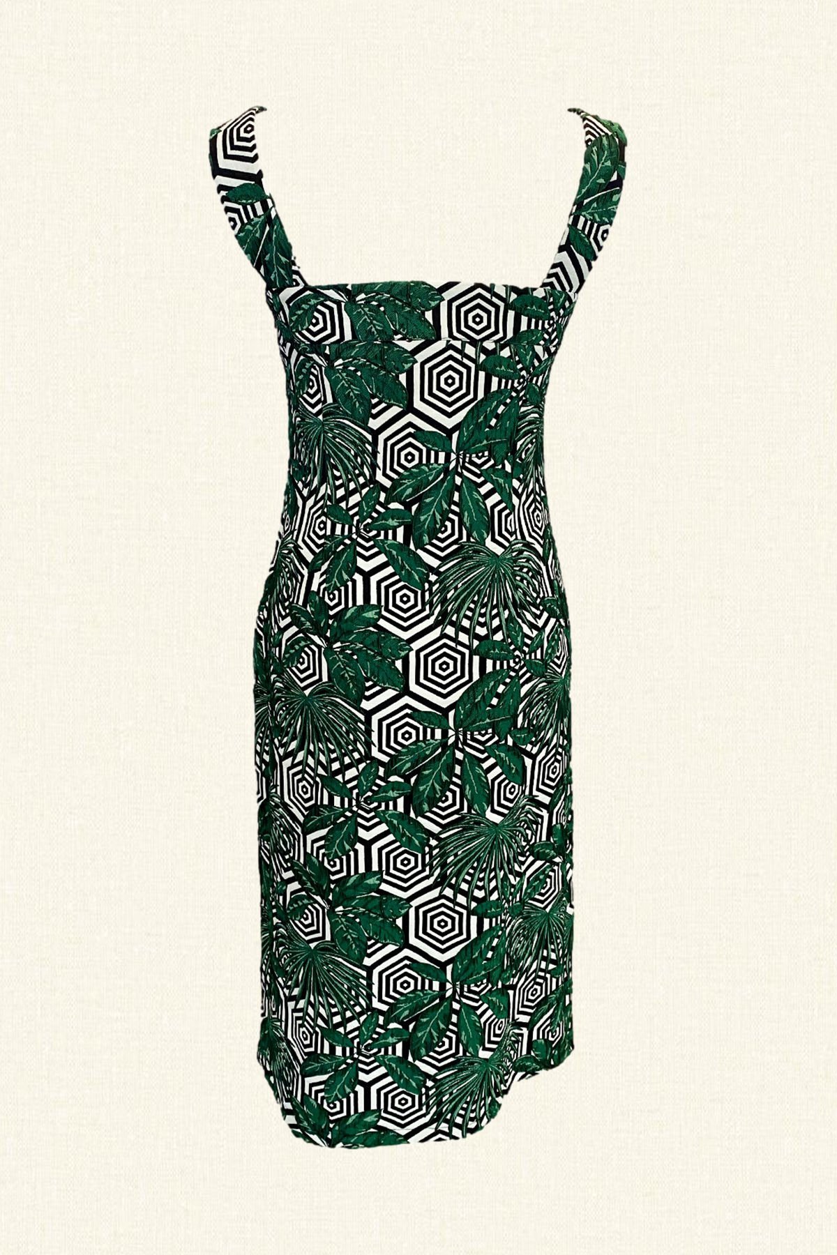 Yaprak Desenli Geometrik Detaylı Yeşil Elbise