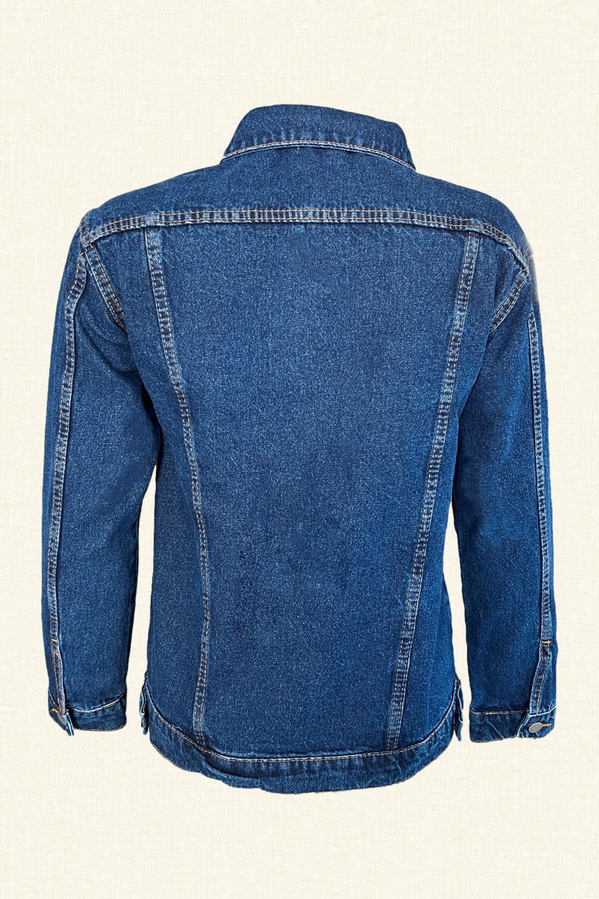 Yıldız İşlemeli Koyu Renk Jean Ceket